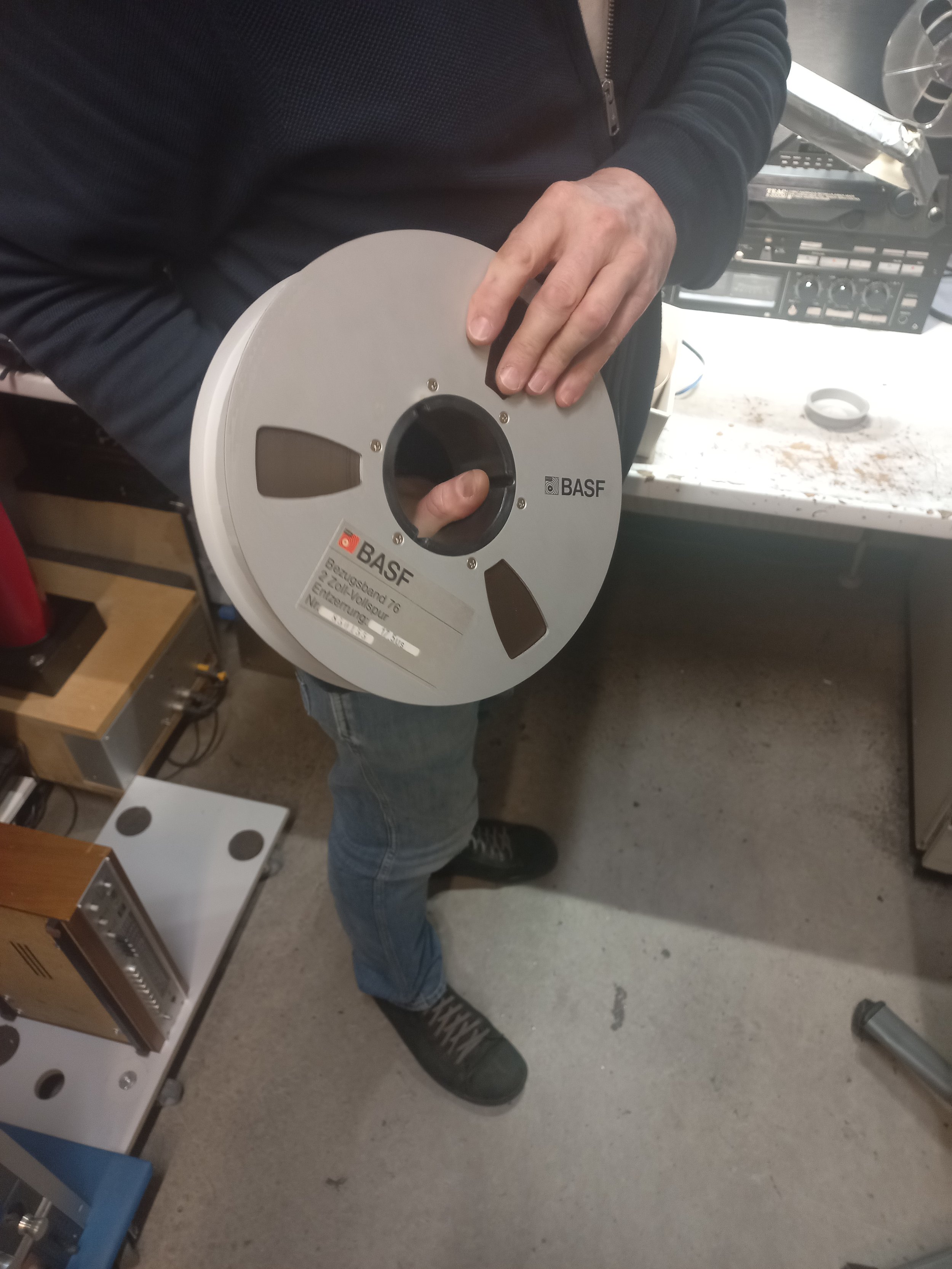 Manchmal kommen Geräte herein, die selbst sie zuvor noch nie gesehen haben, wie der DUAL Verstärker, der gerade auf Hantens Werkbank steht. Die Studer Tonbandmaschine A807 hingegen kommt öfters: „Ein tolles Gerät, mit dem man auf einem Viertelzollband zwei Kanäle aufnehmen kann. Für den Heimbetrieb gab es das auch mit vier Spuren, dann hieß es Viertelspur. Es hat aber auch ein Halbzollband gegeben, damit kannst du mehrere Spuren gleichzeitig aufnehmen, das war schon was fürs Tonstudio. Und das größte, das es gibt, ist ein Zweizollband. Das ist der Standard, den man von früher gewöhnt ist. Das 24-Spur-Band hat 762 Meter Länge, und bei entsprechender Bandgeschwindigkeit von 76 kannst du 16 Minuten aufnehmen. Es kostet 500 Euro.“