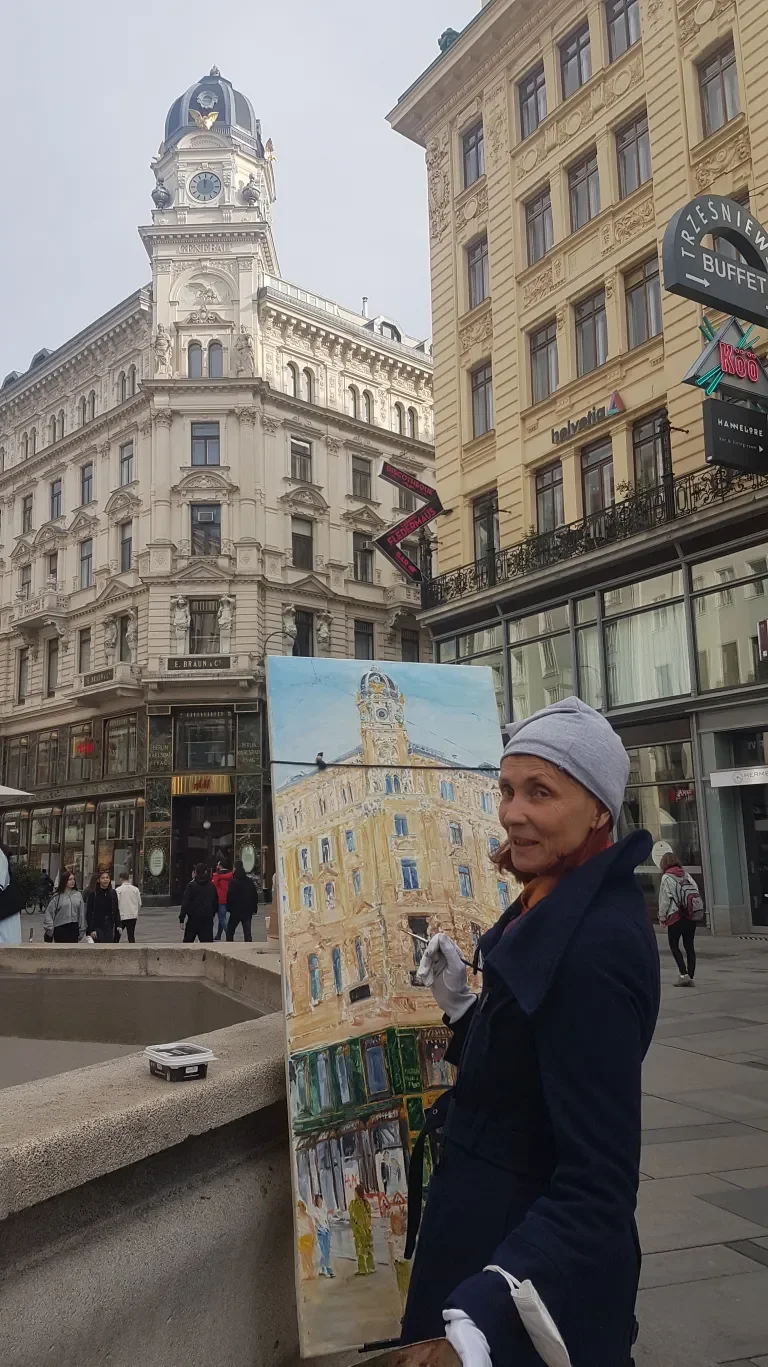 Andrea ist 55, es geht ihr gut. Ich sehe die gebürtige Eferdingerin am Wiener Graben mit ihrer Staffelei und ihren Farben stehen, den Blick ausgerichtet auf das Haus Ecke Spiegelgasse, in dem einst der K. u. K. Herrenausstatter E. Braun & Co. untergebracht war, bevor Palmers und H&M … same old story. Unter dem verglasten Atelierdach auf Otto Wagners Ankerhaus daneben malte einst Hunderwasser seine Schinken.