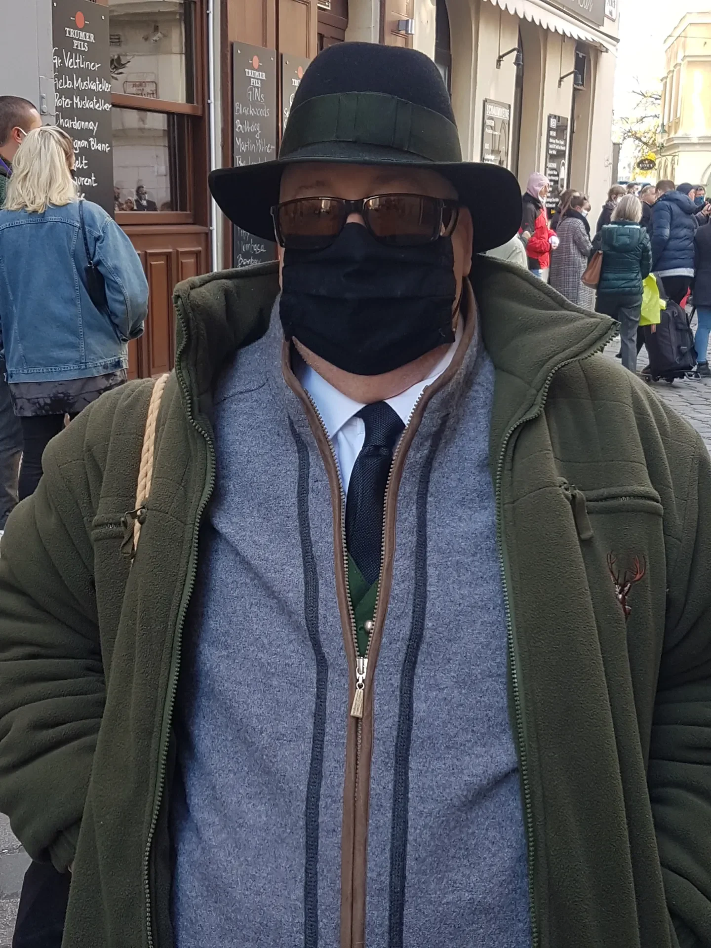 Andreas freut sich, dass auch Vertreter der Islamischen Gemeinschaft Österreichs der Opfer gedenken, „das finde ich gut. Ich hab genug muslimische Freunde, und wenn manche Österreicher glauben, dass es bei uns keinen Islam geben soll: Es hat schon unter dem Kaiser Franz Joseph bosniakische Grenzregimenter gegeben und im Großen und Ganzen nie Probleme! Nur gibt es auf der ganzen Welt halt immer welche, die zündeln, und i vasteh net, warum!“ Er war bei einer großen Versicherung in Wien beschäftigt, wo er mit allen Konfessionen zu tun und nie Probleme hatte. „I sog imma: Wia ma eineschreit in Woed, so schreit’s zruck, so afoch is des.“ Wien stehe nun dafür, dass man sich das „einfach nicht gefallen lassen wird!“ Der Spruch „Schleich di, du Oarschloch!“ gefällt ihm. Deswegen ist er, der „eigentlich ein schwer kranker Mann“ ist mit schweren Augenproblemen, extra aus dem 10. Bezirk hierher gefahren, um ein Zeichen zu setzen, „dass wir uns nicht unterkriegen lassen.“ Sagt der „überzeugte Österreicher“, bevor er in seiner Steirertracht im Getümmel der Stadt entschwindet.