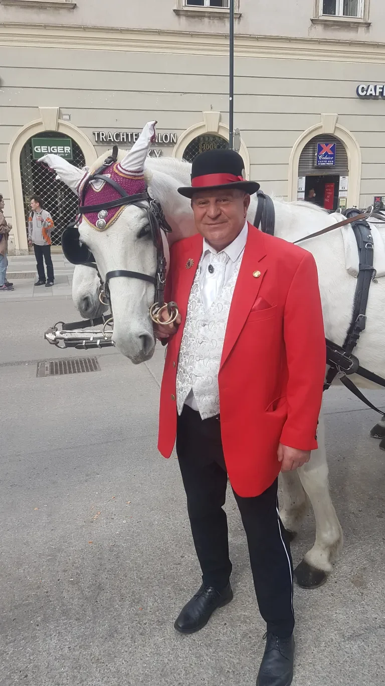 Christian ist 53, seit achtzehn Monaten geht es ihm wieder gut. Bis dahin arbeitete er 35 Jahre lang als Rauchfangkehrer, was ihm einen lädierten Rücken inklusive vieler schmerzstillender Medikamente im Blutkreislauf einbrachte, schließlich „konnte ich trotzdem nicht mehr gehen.“ Eine schwere Operation besiegelte das Ende seiner Karriere, mit den Rauchfängen war es vorbei. In der Krone las er damals zufällig ein Annonce: Suche Fiakerfahrer. Er hat angerufen, und am nächsten Tag saß er bereits als „Lehrling“ am Kutschbock, „bin zwei Monate mitgefahren und hab dann an und für sich die zwei Fiakerführerscheine gemacht, die Fahrprüfung und die Magistratsprüfung. Seither fahr ich.“ Und mit dem Kreuz funktioniert es auch besser als zuvor, sogar ohne Pulverl.