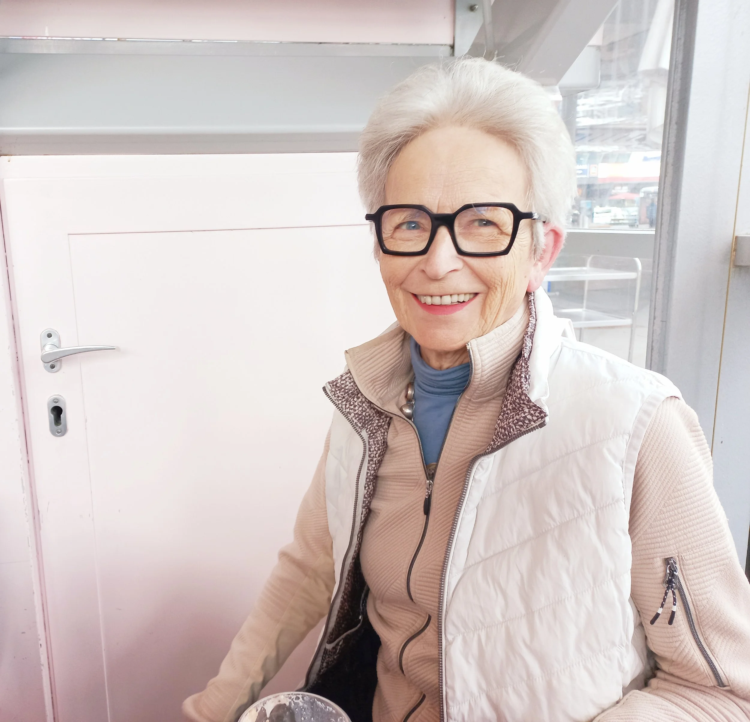 Heute ist dankbar, „dass ich ein Dach über dem Kopf habe, dass keine Bomben auf uns fallen, dass ich mir das Leben leisten kann; dass ich Freundschafen und Familie habe und dass die Sonne scheint, was willst denn mehr? Alles, was ich jetzt bin, führe ich auf meine wunderbare Kindheit zurück. Leben heißt lernen. Wenn ich dort stehengeblieben wäre, naja…. Wichtig ist es, neugierig zu bleiben. Ich bin froh über jeden Tag, an dem es mir gut geht, ab und zu tut mir ein bisserl was weh, aber nichts Gröberes.“ Gerade schleppt sie eine seltene Ohrmuschelentzündung mit sich herum, „darum glänzt mein Ohr so“, lacht sie. Die Ärztin hat ihr gleich Penicillin verschrieben.