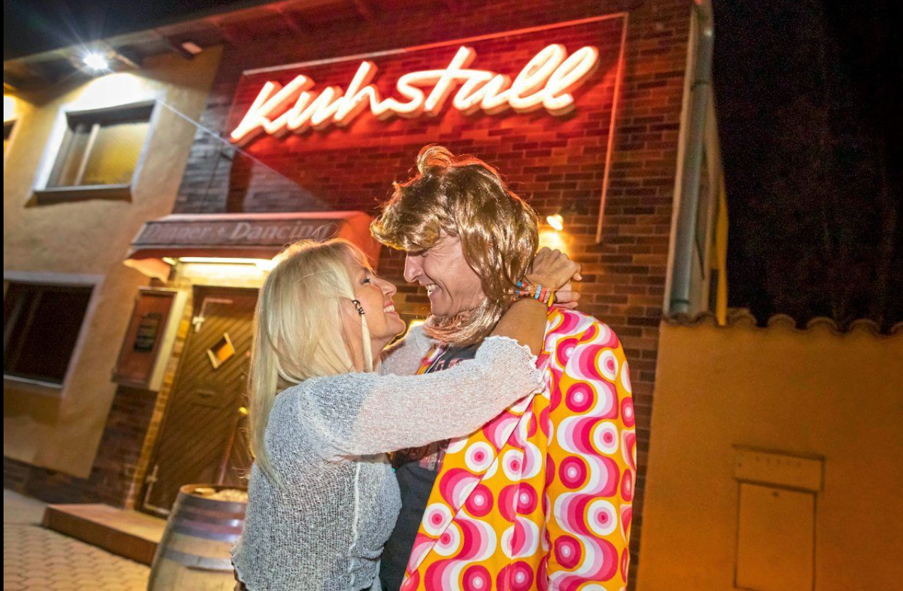 Anders als bei Norbert (60), und Christa ("Ende 30, zwinker, zwinker"), die Ronnie nun zu ihrem Tisch ganz hinten im ausreservierten Kuhstall führt. Er trägt einen 70er-Jahre-Partyanzug mit dazupassender Perücke, seine schöne Begleiterin ihre langen, blonden Haare offen. Vor 16 Jahren haben die beiden einander während einer Fortbildung in Bad Ischl kennengelernt, wo er "ein bisserl hilflos" war, wie sie erzählt, und er sich mächtig "ins Zeug gelegt" hätte, nachdem sein "Sonnenschein" ihn gefragt hatte, ob er sich beim Abendessen zu ihr setzen wolle. Aus ihrer Initiative wurde Liebe, die in der Folge "immer noch größer und größer wurde". Ihr Geheimnis: "Dass man es auch regelmäßig sagt, wie wichtig einem der andere ist." Beide können auch heute noch kaum fassen, wie schön das Leben mit dem anderen ist: "So ein Glück muss man einmal haben!"