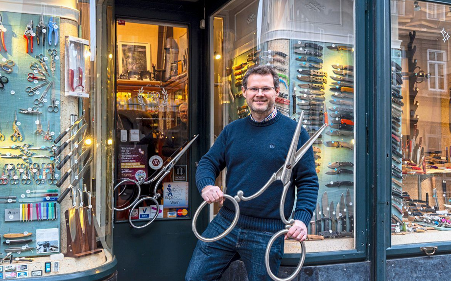 Widerwillig übernahm Andreas Lorenzi das Stahlwarengeschäft im siebenten Bezirk. Heute verkauft er nicht nur Messer & Co, sondern serviciert sie auch mit großer Freude