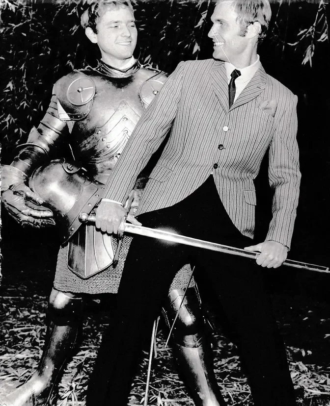 Johann Schüller (rechts) und die Ritterrüstung aus dem Film "Charleys Tante" mit Peter Alexander. Foto: Schüller