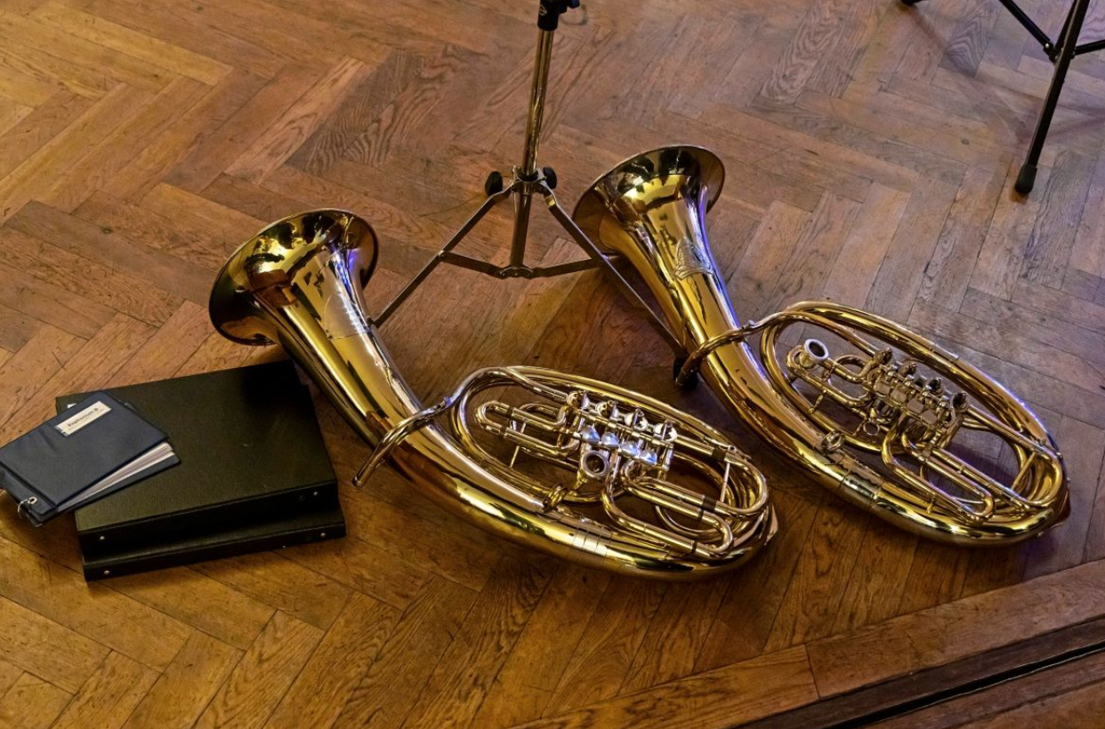 "Natürlich braucht eine Blasmusik ein Schlagwerk", klärt er Unwissende auf. "Beim Marschieren aufgeteilt in kleine Trommel, große Trommel und Tschinellen. Bei den konzertanten Aufführungen ist alles dabei – von den Pauken über das Xylophon bis hin zum Drum-Set." Hinzu kommen Holz- und Blechbläser, wobei sie in manchen Registern mittlerweile an ihre Kapazitätsgrenzen stoßen: "Klarinette oder Saxophon können wir fast nicht mehr aufnehmen, weil nicht alle auf der Bühne stehen können." Oboe und Fagott hingegen würden sie mit Kusshand nehmen – solche melden sich nämlich kaum. "Sie würden dem Orchester einen eigenen, weichen Klang verleihen."
