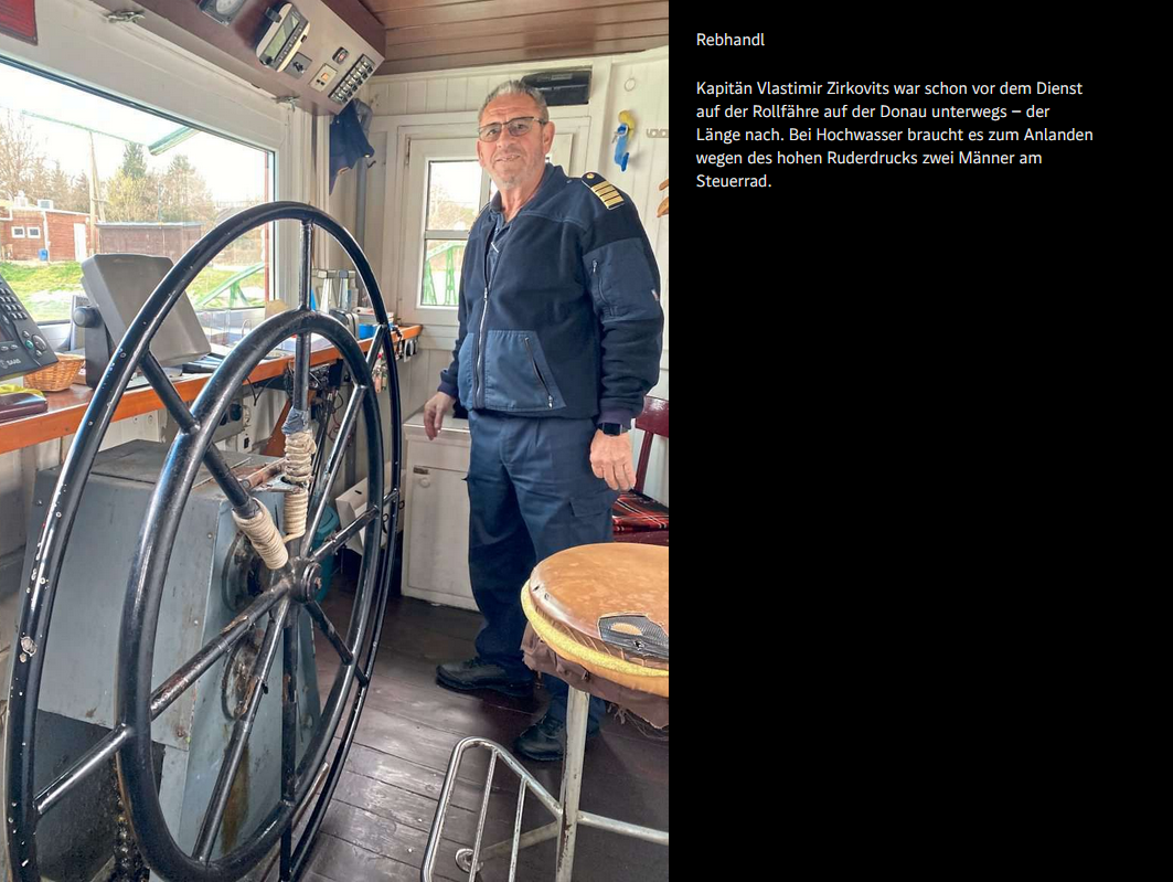 Vlastimir Zirkovits ist seit 40 Jahren Donaukapitän. 24 Jahre davon befuhr er den Strom in Serbien, seit 16 Jahren ist er einer von zwei Kapitänen auf der Rollfähre bei Korneuburg. "Ist besser hier, hier habe ich keine Nachtschicht", lacht er, dessen Eltern aus Boževac nach Braunau gekommen waren. Mittlerweile hat er hier drei Enkel und zwei in Serbien, keines davon soll Donaukapitän werden. "Zu viel Schichtarbeit!"
