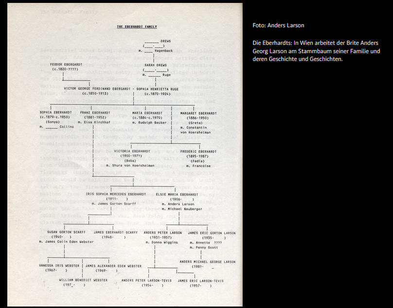 Zum Gespräch über die dramatische Geschichte seiner Familie bringt der 41-jährige in Wien lebende Brite eine Bleistiftzeichnung aus dem Jahre 1907 mit. Auf dieser ist Leo Tolstoi zu sehen, der russische Großschriftsteller, Tolstois Sohn hat sie für Larsons Großmutter Elsie Eberhardt angefertigt, die damals ein Jahr alt war. Heute ist die Zeichnung im Besitz des Enkels, und auch ein paar Ikonen aus jener Zeit hängen noch über seinem Bett. Aber viele dieser Schätze konnte seine Familie nicht retten, als sie zehn Jahre später vor den Bolschewiken aus Russland fliehen musste und sich in der Folge über die halbe Welt verteilte.
