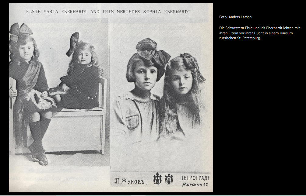 Wie viele Ereignisse passen in ein Leben, fragt er sich, und wie viel Leben in eine einzige Familie? Bis 1917 wohnten die Eberhardts in einem Haus an der Fontanka 172 im russischen St. Petersburg, es hatte "40–50 Zimmer", steht in der Familienchronik zu lesen, und Elsies Schwester Iris erinnerte sich später, als sie längst in New York lebte: "We had a tremendously long corridor and windows overlooking the bay of Finland. We had three cars, but just one chauffeur."