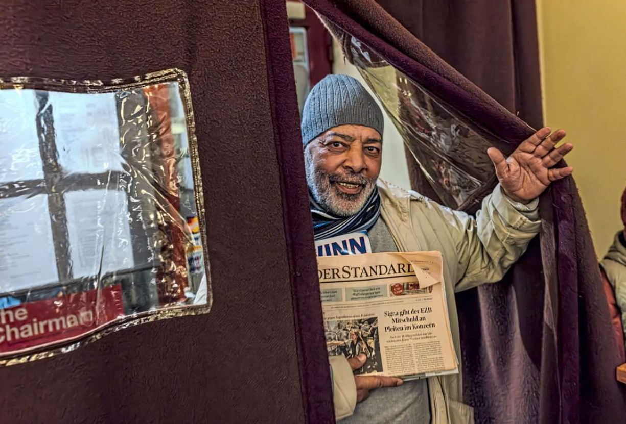 Die meisten, die er heute mit „Habibi!“ begrüßt, drücken ihm ihr Bedauern darüber aus, dass sie fast alles, was er da ausgebreitet auf seinem Arm liegen hat, schon im Internet gelesen hätten – das Magazin Profil, den Spiegel, die Zeit, auch den STANDARD. Dann geht dieser freundliche Mann wieder dahin mit seinem Einkaufswägelchen, das er hinter sich herzieht, und man freut sich, ihn bald wieder zu sehen. Aber kaum jemand weiß mehr über ihn, als dass er Zeitungen verkauft.